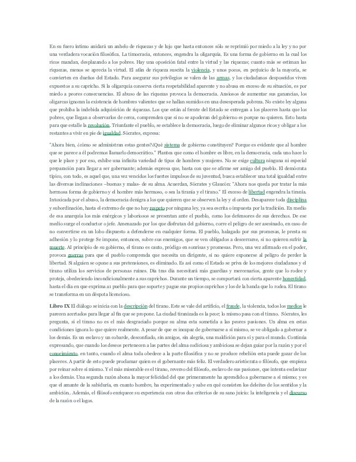 RESUMEN DE LA REPBLICA DE PLATN Captulo IX. Sin embargo el Estado tirnico es adecuado al individuo tirnico por tanto la. Cuando la violencia de las pasiones se ha relajado y se ha amortiguado su fuego se ve uno libre de una multitud de tiranos.