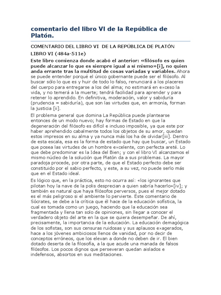 Comentario Del Libro Vi De La Republica De Platon Pdf Platon Conocimiento