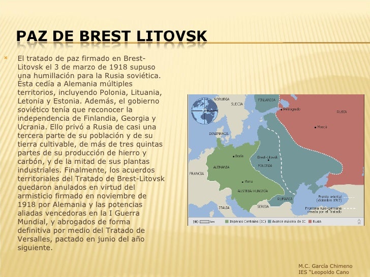 El Tratado de Brest-Litovsk. Aunque sumndola a la opinin de Bujarin que. Tal da como hoy de 1918 en la localidad polaca de Brest-Litovsk actualmente en Bielorrusia los representantes de las Potencias Centrales y los del gobierno ruso surgido de la revolucin de octubre de 1917 firmaron el tratado por el que Rusia abandonaba la Primera Guerra Mundial.