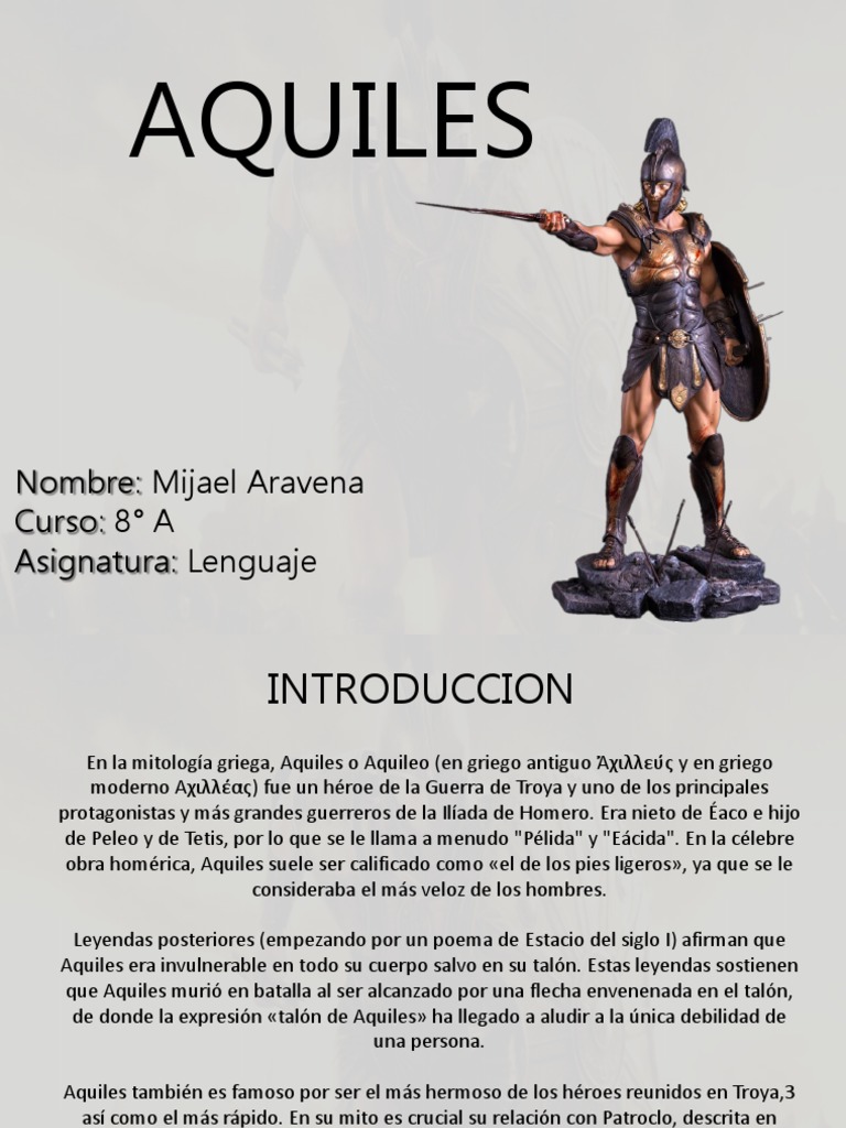 Hijo de Peleo rey de los Mirmidones en Ftia y de Tetis una ninfa marina Aquiles era considerado invencible pero no inmortal. Te lo agradecer enormemente y podr hacer ms y mejores vdeosEn la guerra de Troy. Libro El Taln de Aquiles y Otros Mitos Griegos Carolina ValdiviesoCecilia Beuchat ISBN 9789561230026.