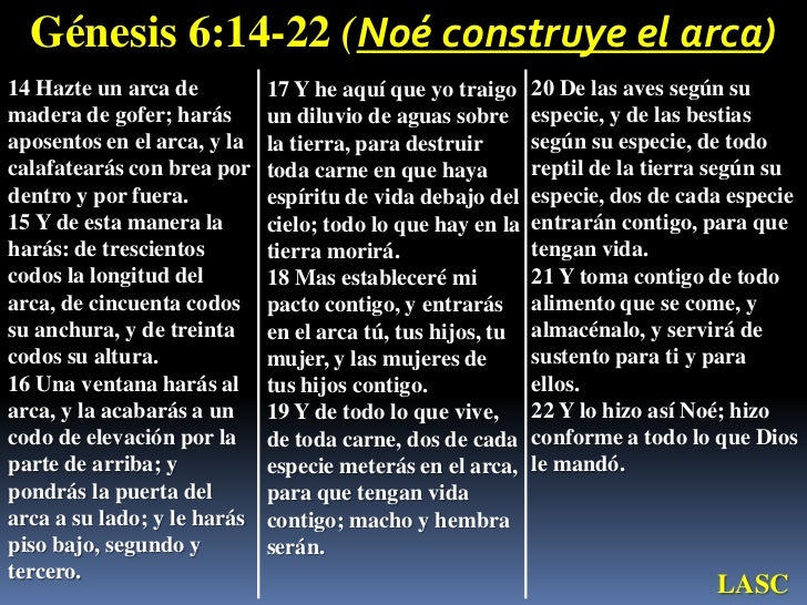 Captulo 6 La maldad de los hombres Y vio Jehov que la maldad de los hombres era mucha en la tierra. Estudio bblico presenta un resumen significativo de la historia tiempo y detalles relevantes de acuerdo a los hechos de la biblia basados en Comentario Bblico de Matthew Henry y leyendo en paralelo a la versin de la Biblia Biblia Reina Valera 1960. Genesis 69-22 begins another new section in Genesis called the generations of Noah.