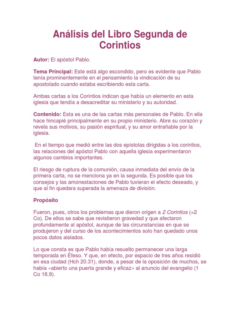 Resumen 2 Corintios Pdf Primera Epistola A Los Corintios Pablo El Apostol