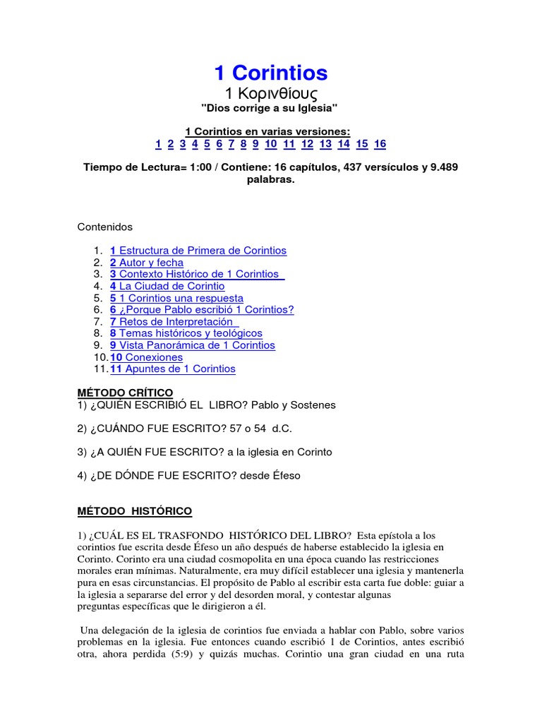 1 Corintios Con Todos Los Datos Pdf Primera Epistola A Los Corintios Pablo El Apostol
