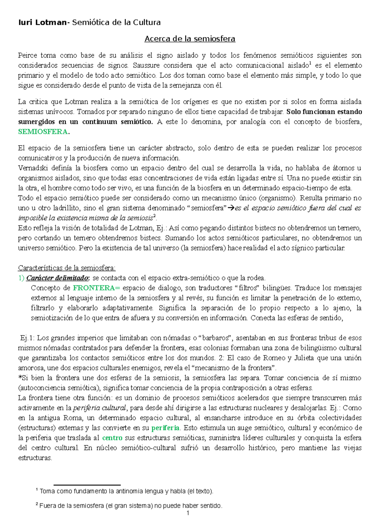Semiosfera Lotman Resumen